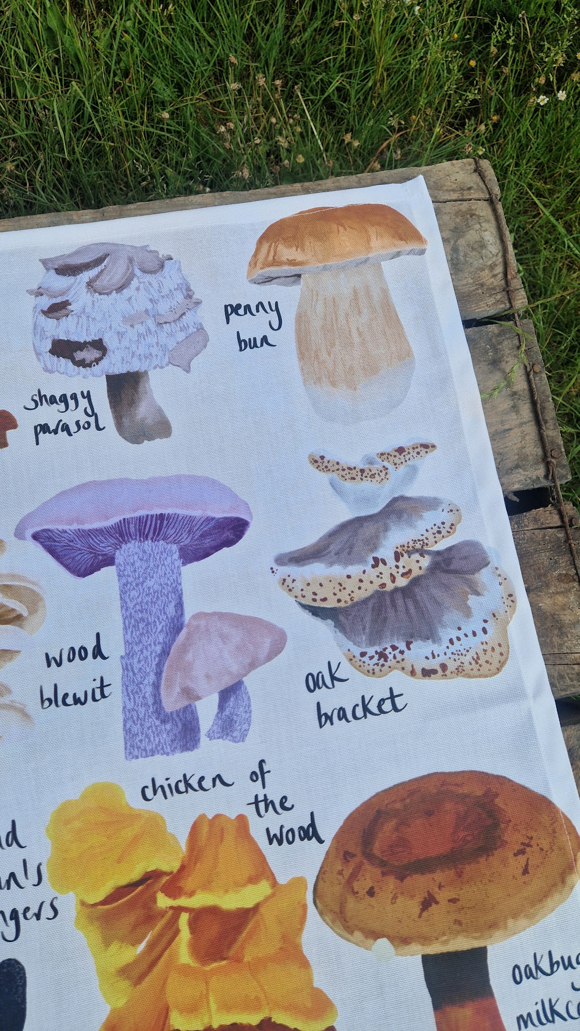 British fungi tea towel illustrated by me and made in the UK using 100% cotton.