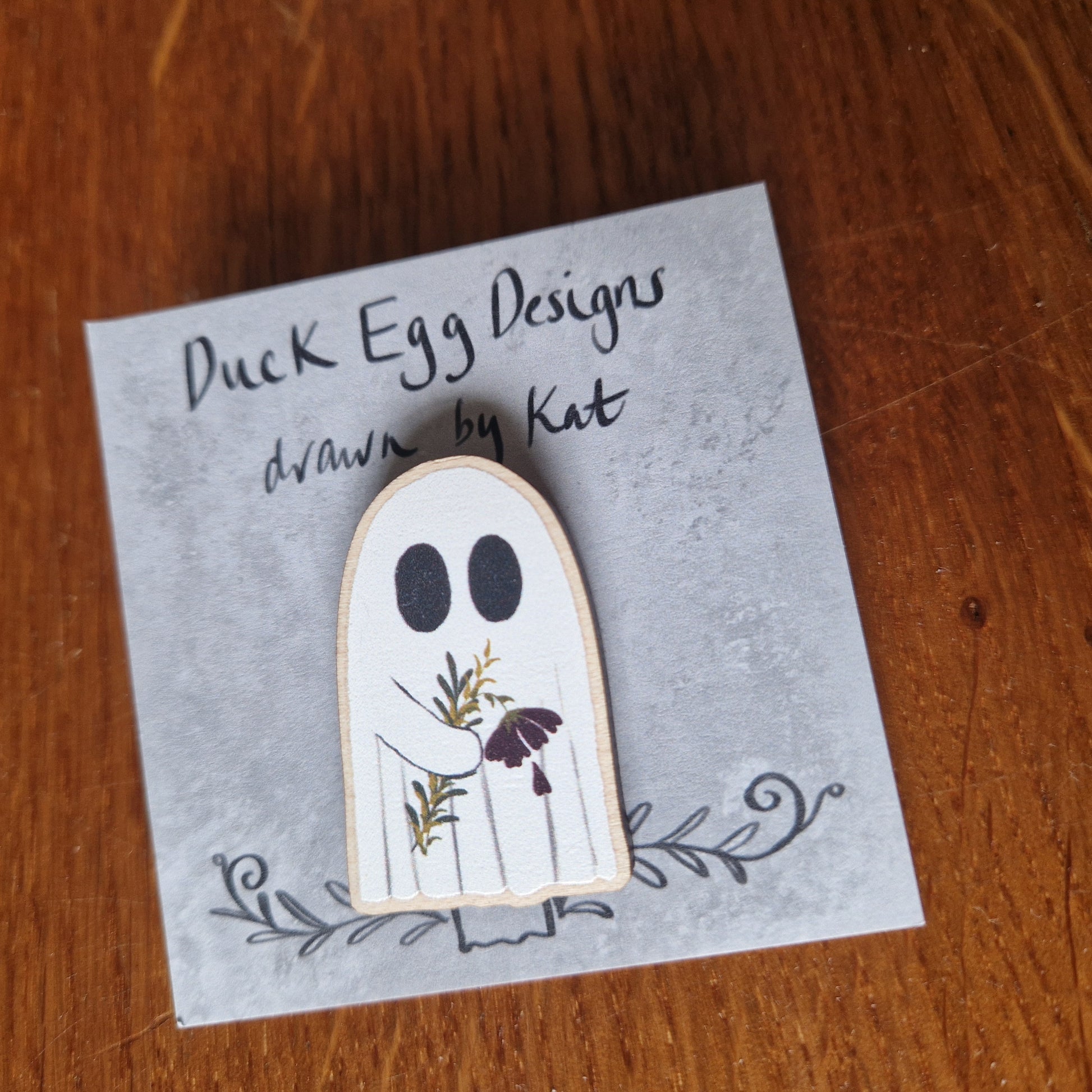 Pin badge designed by me and made using FSC certified wooden charm featuring my artwork.