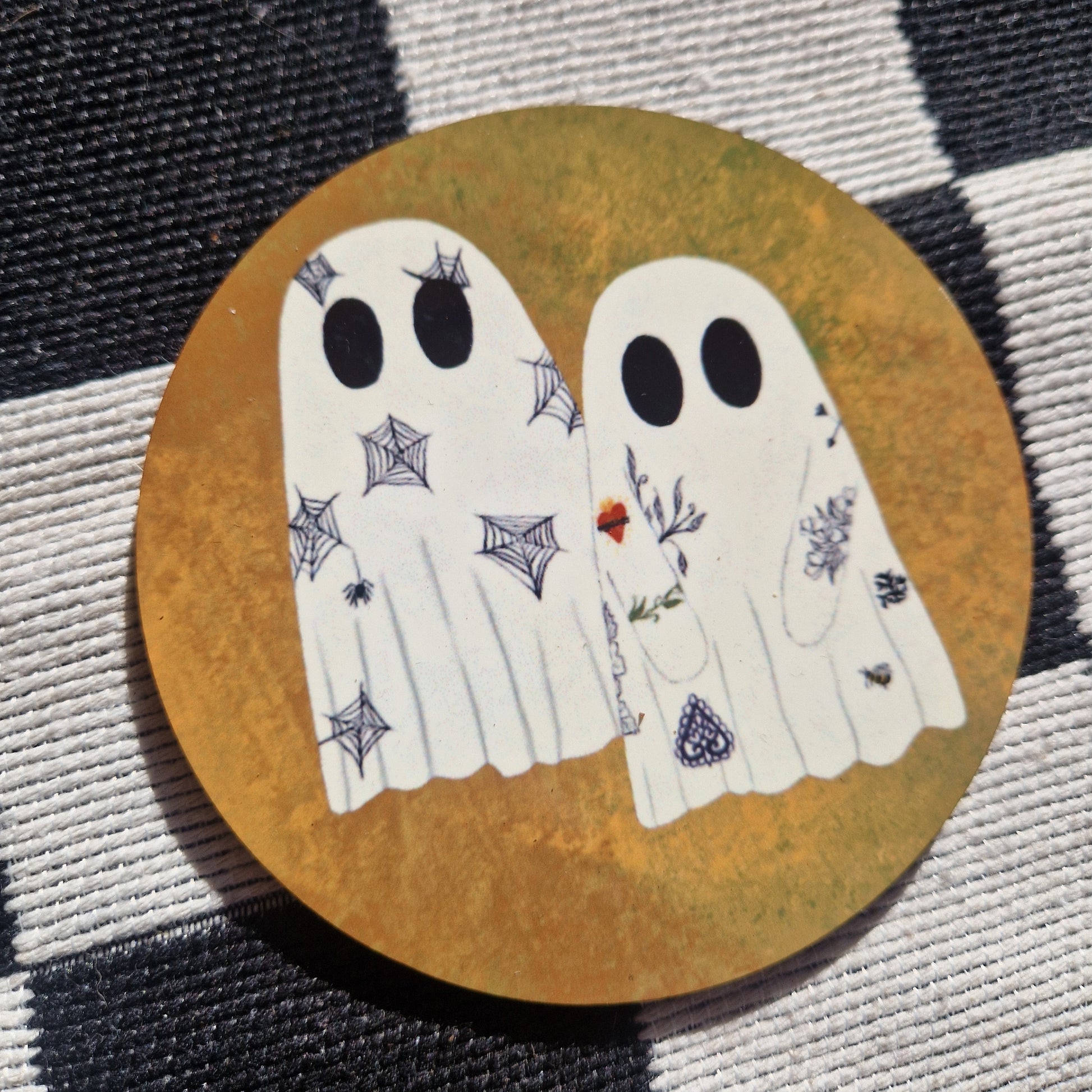 Designed by me and printed in small batches in the UK. The coaster is wipe clean with a cork base and measures approximately 9.4cm across.